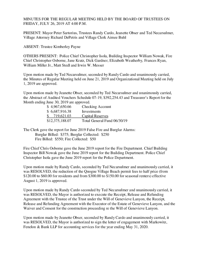 Fillable Online VILLAGE OF QUOGUE, NEW YORK, HELD IN THE VILLAGE OFFICE