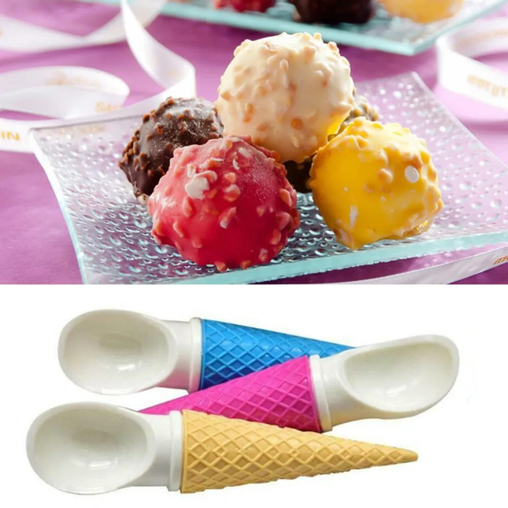 1pcs Cone Shaped Ice Cream Scoop No Slip Handle Plastic Dessert Spoon