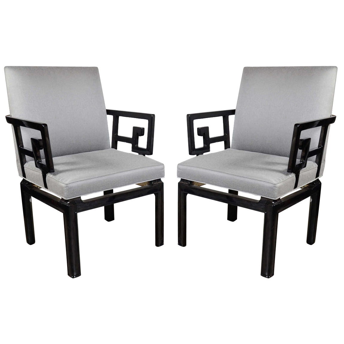 Pair of Mid Century Modern Baker Occasional Chairs in Black Lacquer For Sale at 1stDibs