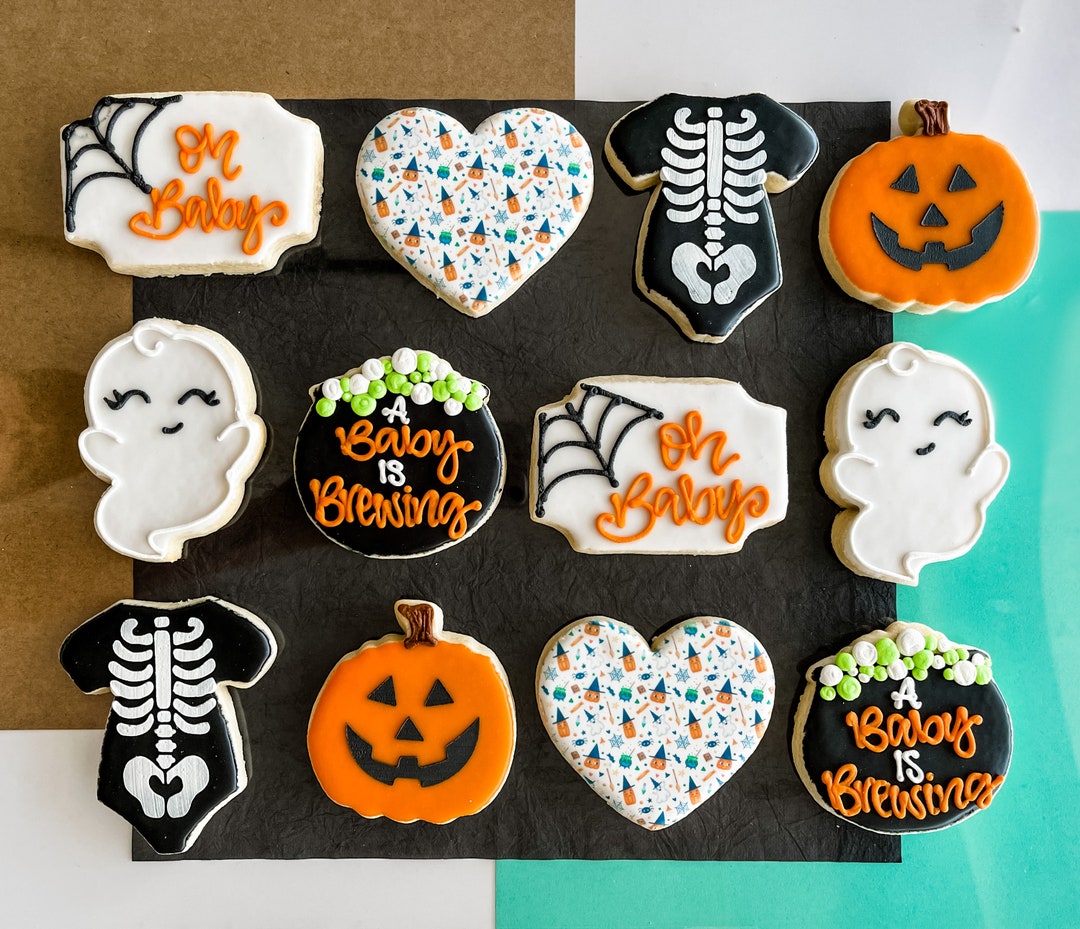 Halloween Baby Shower Cookies // A Baby is Brewing Baby Shower Etsy Halloween Theme Baby Shower Cookies check out our halloween baby shower cookies selection for the very best in unique or custom, handmade pieces from our. as baby showers become more creative and personalized, why not bring some spooky fun to the table with a. halloween themed baby shower is the perfect theme for both boys and girls if your shower party id. Halloween Theme Baby Shower Cookies.