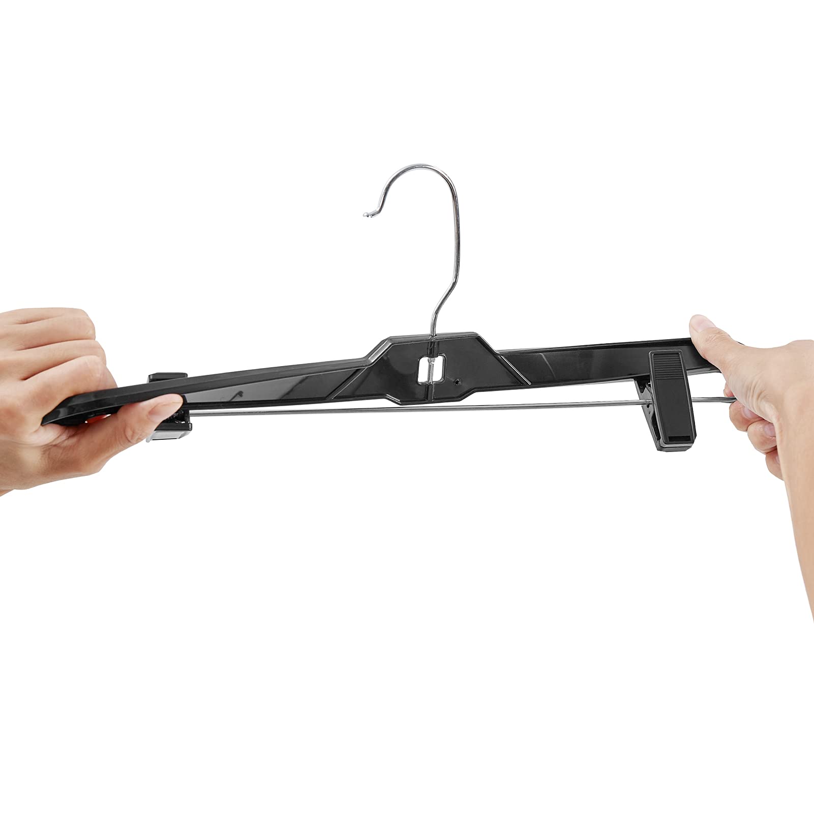 HOUSE DAY Black Plastic Pant Hangers with Clips, 12 Pcs Pack 14 inch Pants Hangers Bulk 50pack space saving skirt hangers with clips is an ideal big bulk hangers for family use. Check each product page for other buying. The strength of wholesale clothes. The quality original batts pant hanger with easy up and down sliding for secure hanging of men's or woman pants. Sold case packed only 100 units. Pants hangers with clips, skirt hangers. Pants Hangers Bulk.