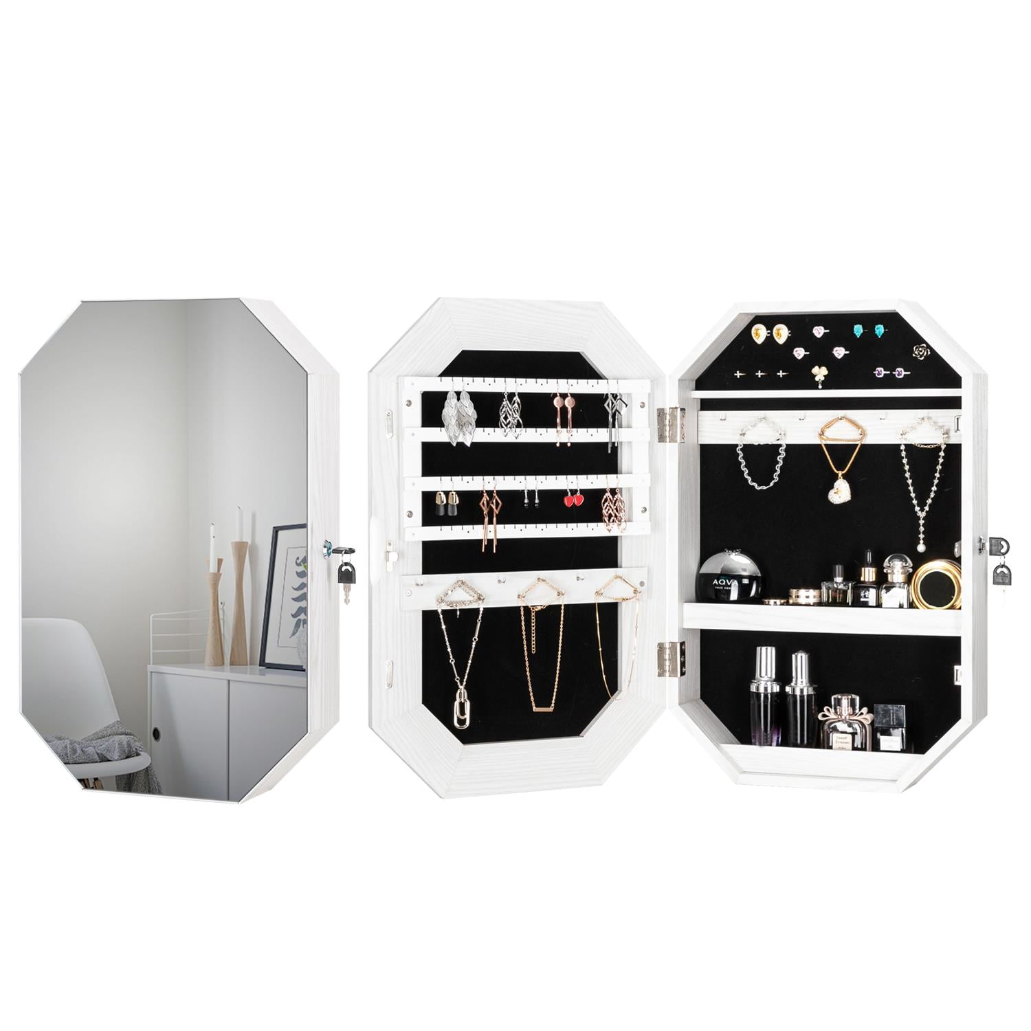 Bonnlo Modern DiamondShaped Jewelry Armoire, Lockable Octagonal Bonnlo Jewelry Armoire Mirror New full screen display brings you larger view and a different enjoyment. 🎄full view & full screen: Bonnlo Jewelry Armoire Mirror.