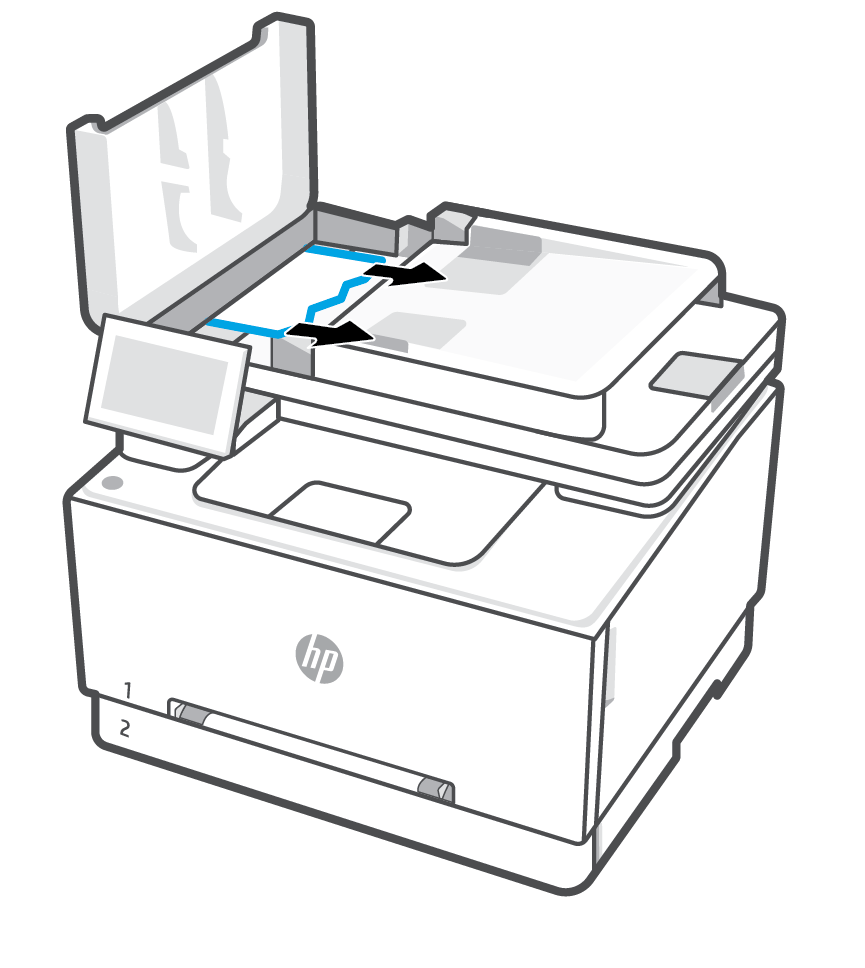 CX820/CX825/CX860 Series—Clearing paper jam in the automatic document Remove Paper From Document Feeder Hp Lift the latch to release the document. Clean the automatic document feeder (adf) if your printer has an adf, clean it regularly to help avoid paper jams and quality. Learn how to clear paper jams in the automatic document feeder for the hp laserjet mfp. Follow these steps to clear a paper jam from the automatic document feeder (adf) press. Remove Paper From Document Feeder Hp.