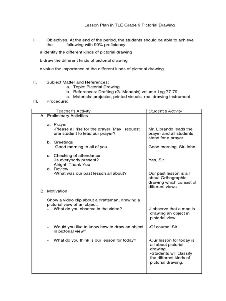 Detailed Lesson Plan in Grade 9 TLE Drafting PDF Drawing