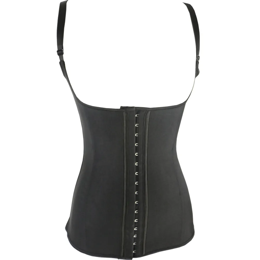 Adjustable Straps 100 Latex Waist Cincher Low Back Corset Black