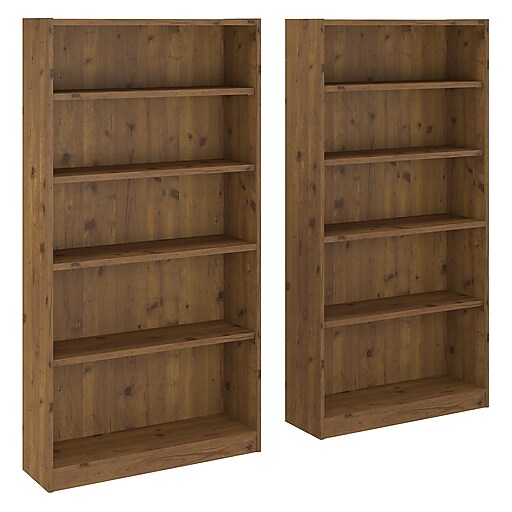 Bush Furniture Universal 5Shelf 72"H Bookcases, Vintage Golden Pine, 2