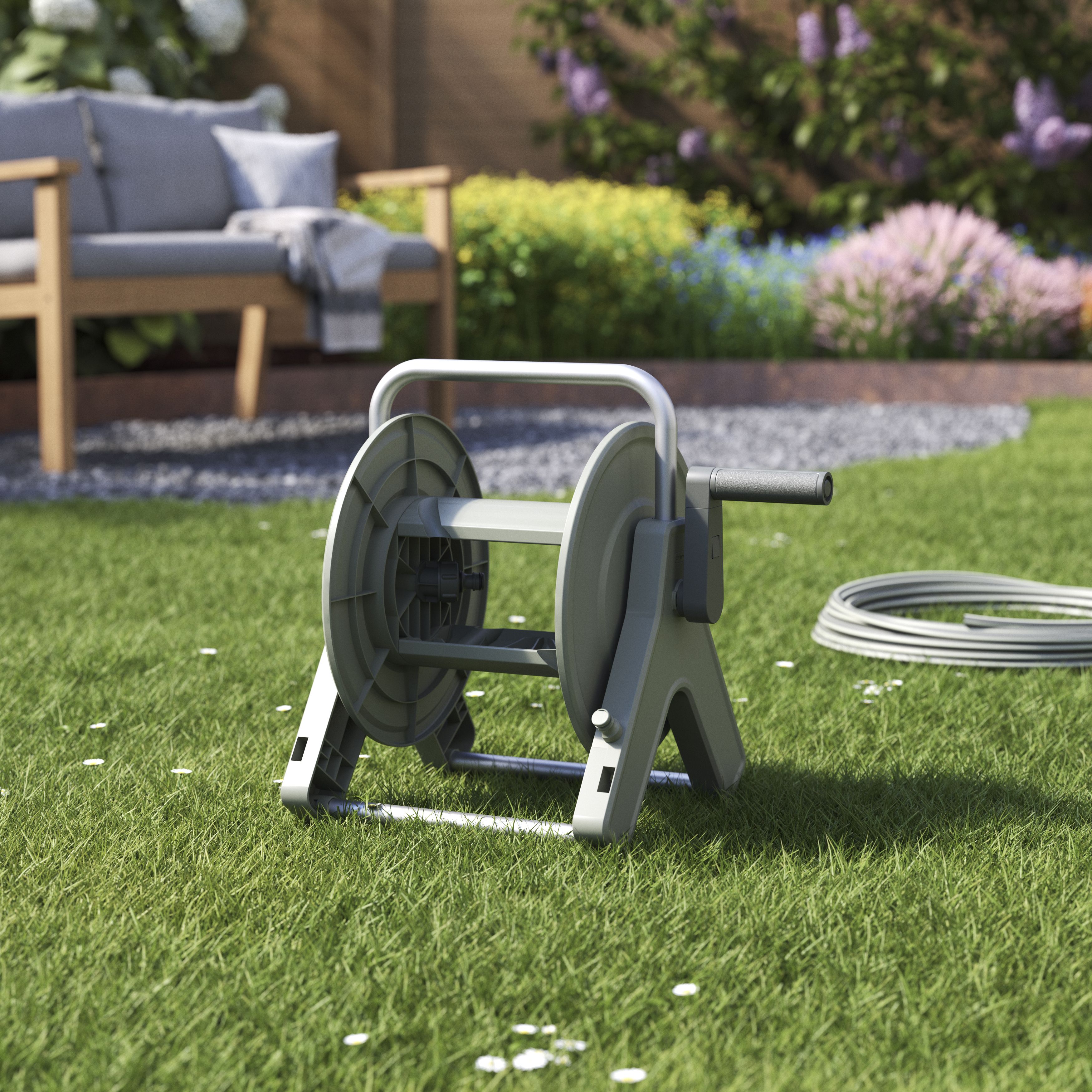 Verve Hose Reel Set Freestanding Manual Integrated Handle Garden Hosep Verve Automatic Hose Reel buy verve hose pipes & hose reels at b&q open 7 days a week. this reel features an auto guide to help with easy rewinding and hose storage. our 35m verve auto reel is designed for wall mounting and can pivot 180 to help you move around the garden easily. Inspiration for your home &. verve. Verve Automatic Hose Reel.