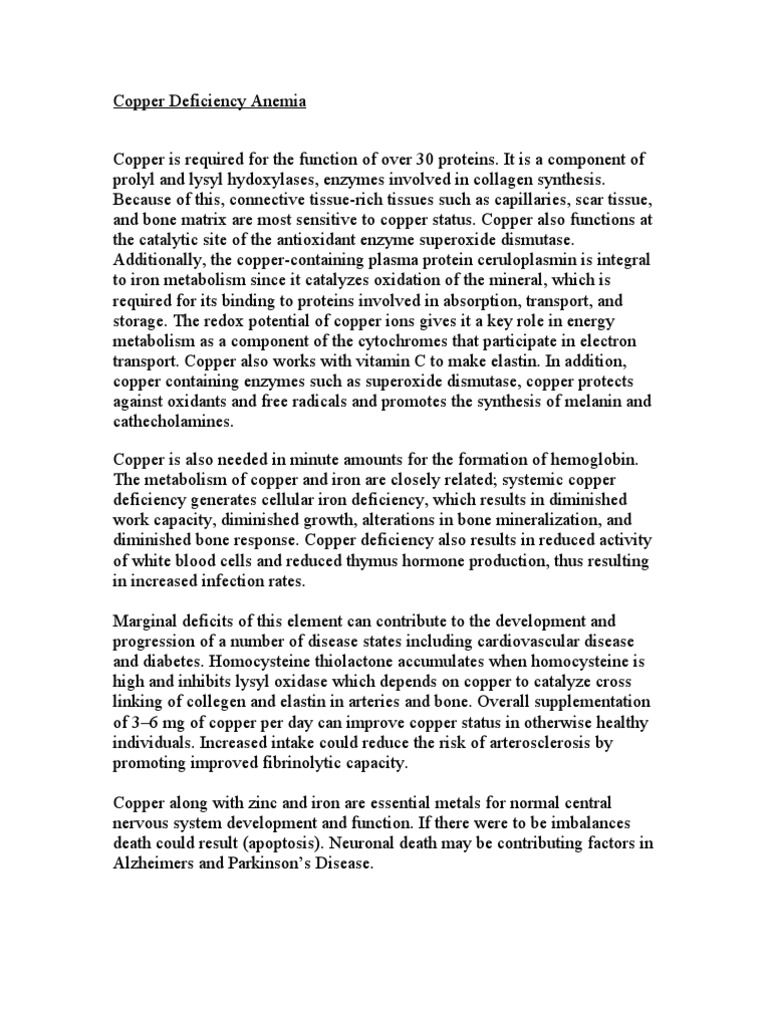 Copper Deficiency Anemia Copper Anemia