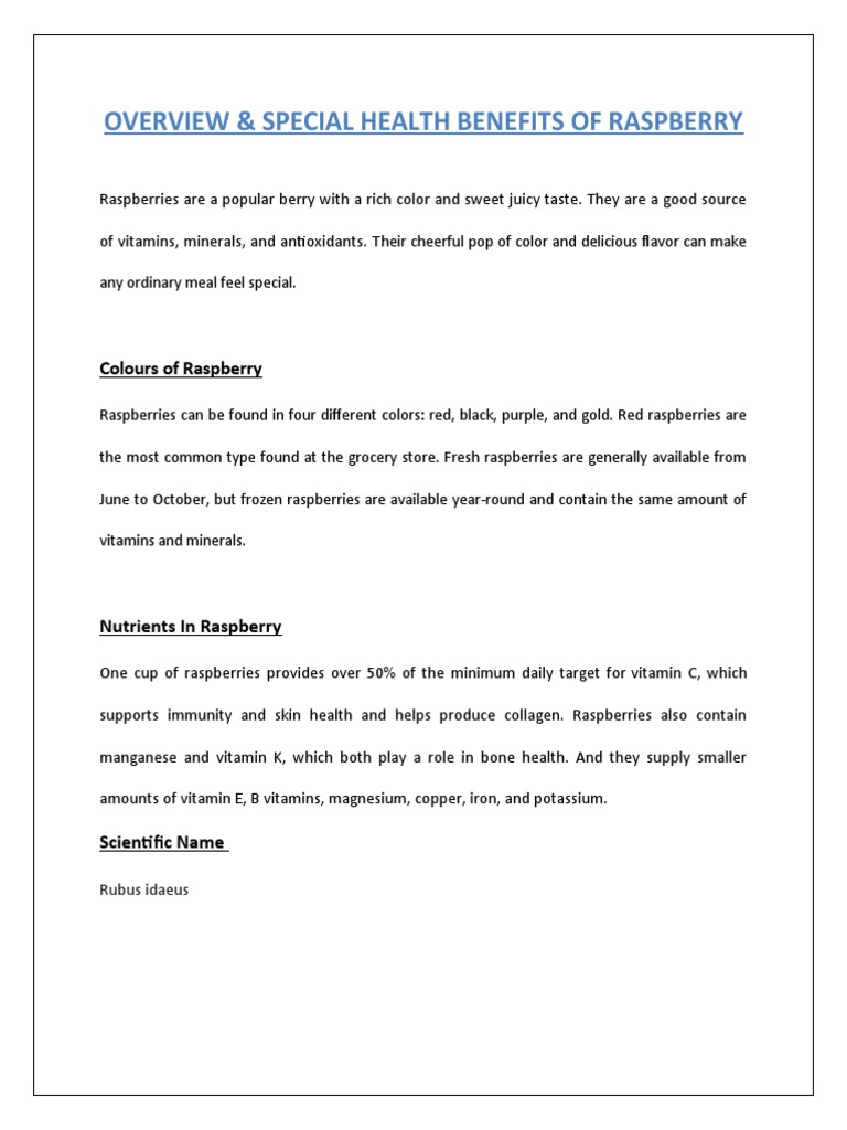 Health Benefits of Raspberries PDF Dietary Fiber Diet & Nutrition