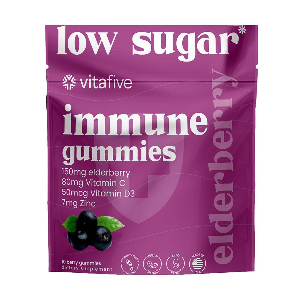 Vitafive Low Sugar Elderberry Immune Gummies Travel Size Shop Pain