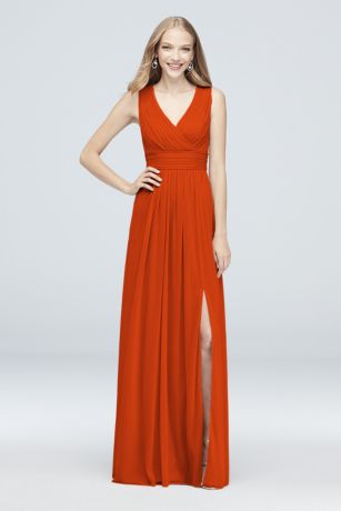 Long Mesh Pleated Tank Bridesmaid Dress David's Bridal