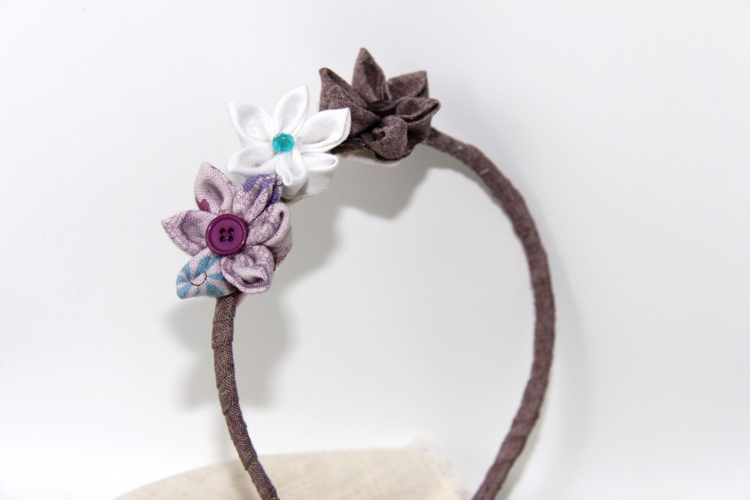 Linen flower headband