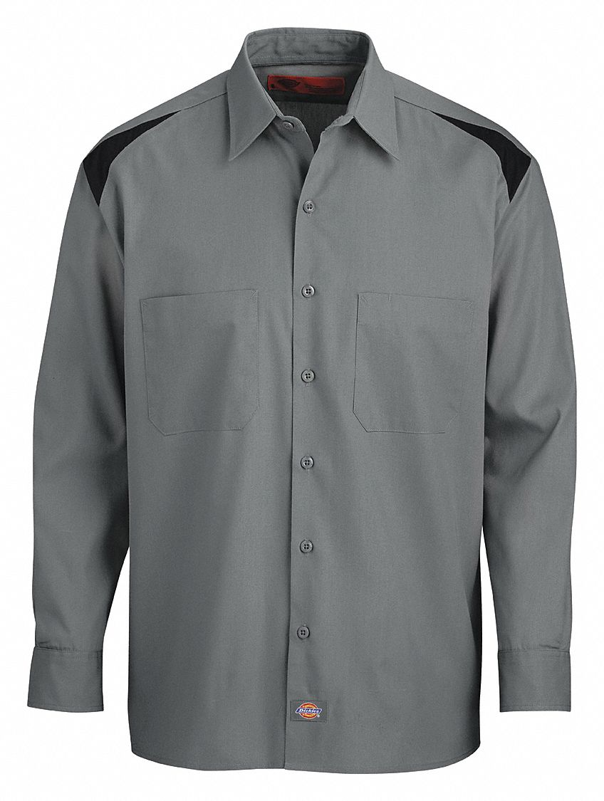 DICKIES Smoke Black Long Sleeve Shirt, XL, 65 Polyester/35 Cotton, Regular Length 46MR26
