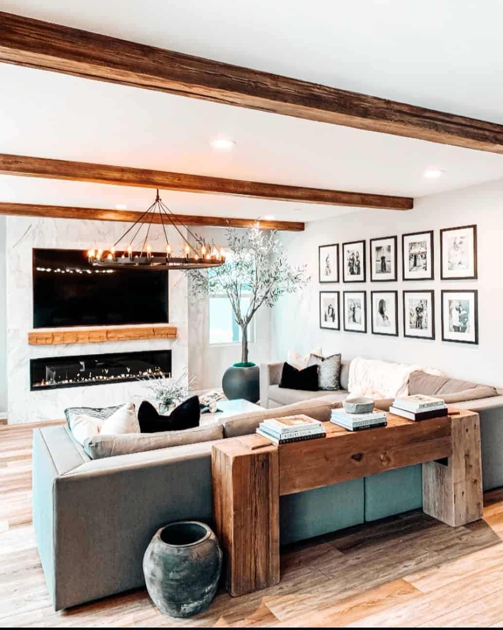 Low Living Room Ceiling With Exposed Rustic Wood Beams Soul & Lane