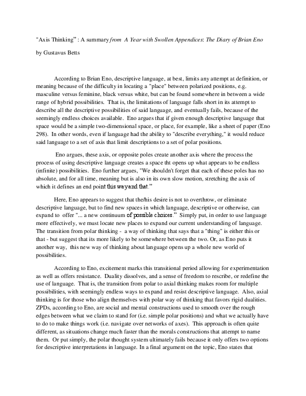(DOC) Axis Thinking A Very Brief Summary of Brian Eno Gustavus Betts