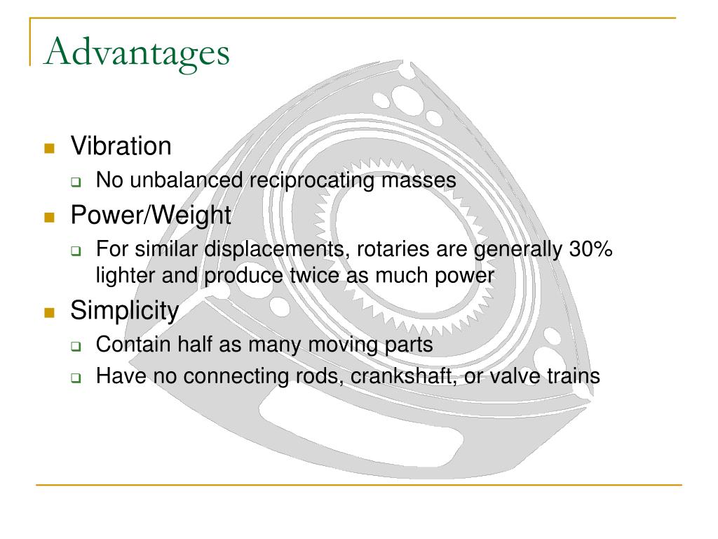 PPT The Rotary (Wankel) Engine PowerPoint Presentation, free download What Is The Benefit Of A Rotary Engine The main disadvantage is their design. A rotary engine is an internal combustion engine that separates an engine's four jobs — intake, compression, combustion, and. The rotary engine is very simple. It’s a motor design that utilizes way less moving parts than it’s piston counterpart. The advantages of rotary engines include their mechanical operation, simplicity, and more. What Is The Benefit Of A Rotary Engine.