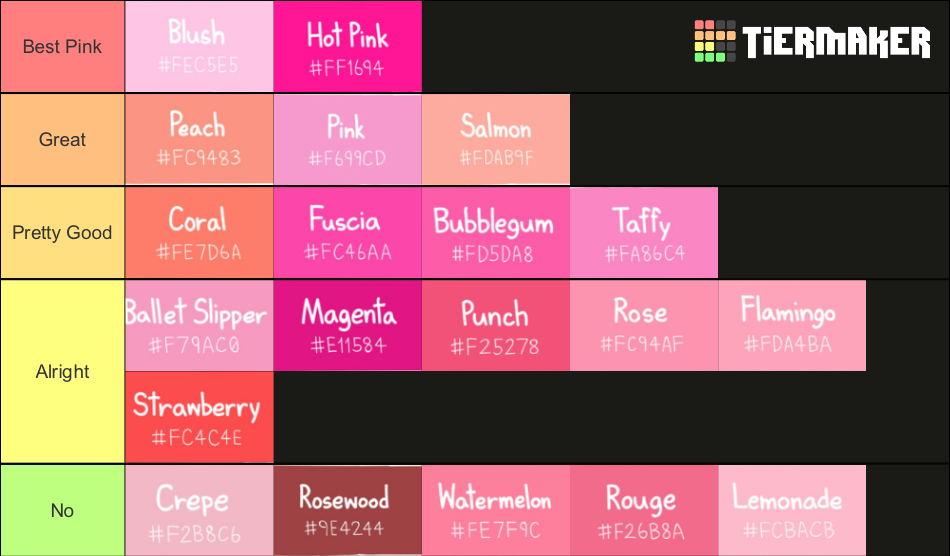 Shades of Pink Ranked Tier List Rankings) TierMaker