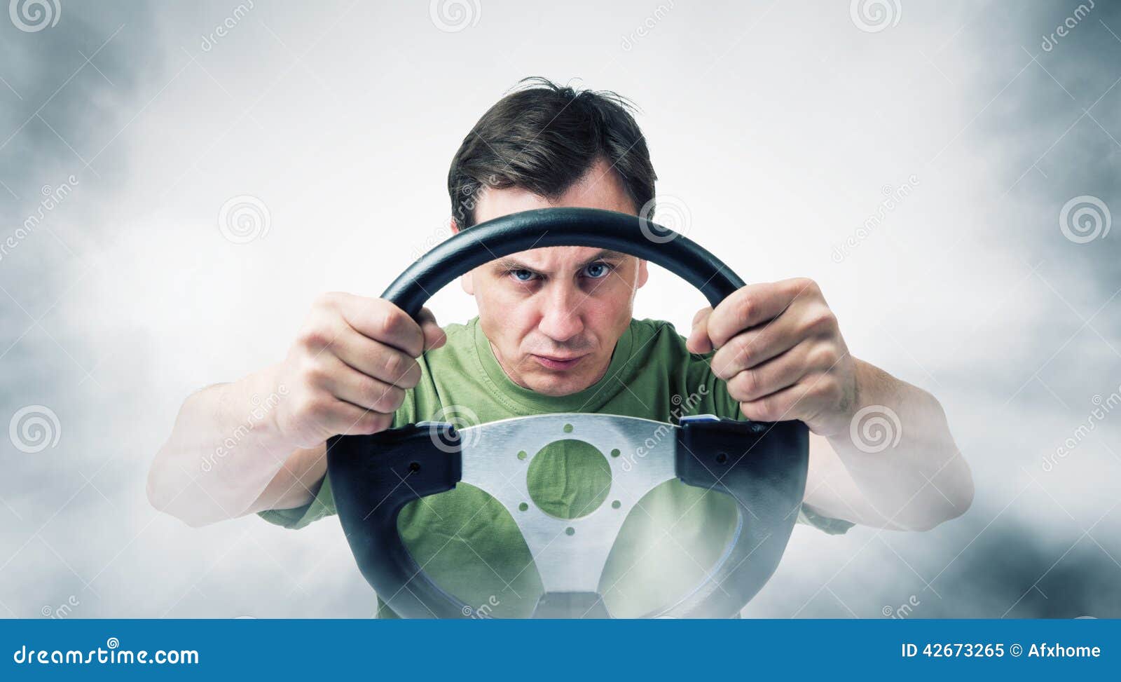 Man with a Steering Wheel in Smoke, Auto Concept Stock Image Image of