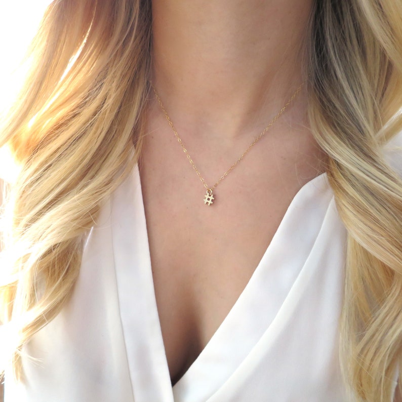 Gold Hashtag Necklace Small Hashtag Pendant Dainty Hashtag Etsy
