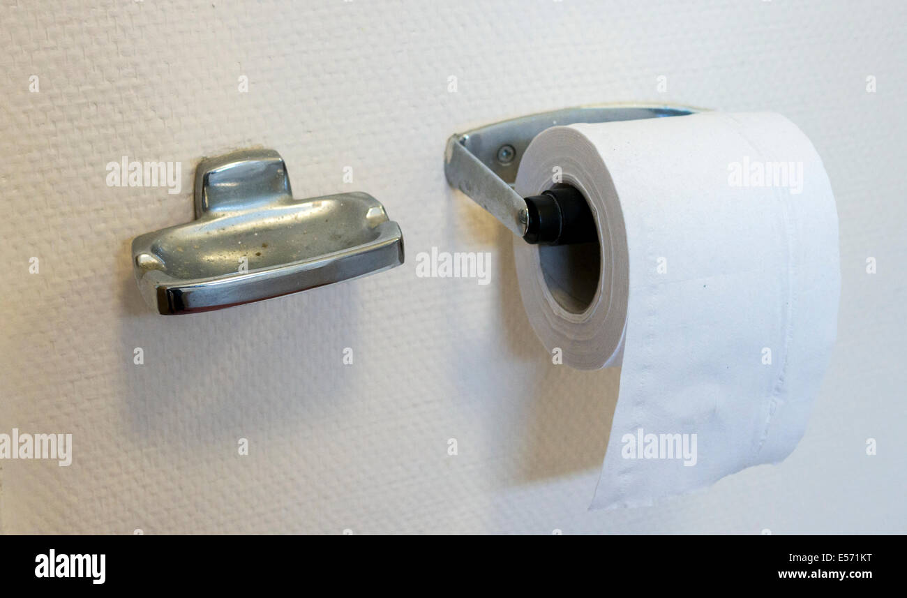 Ash Tray and Toilet Roll in Bathroom Stock Photo Alamy