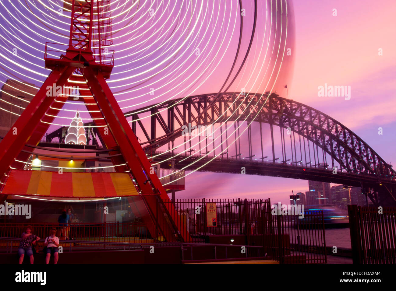 Luna Park ferris wheel blurred lights motion movement with Harbour