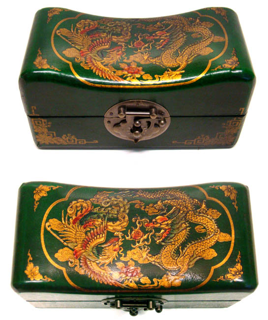 Chinese Wooden Jewelry Box Dragon & Phoenix, Oriental Wooden Jewelry