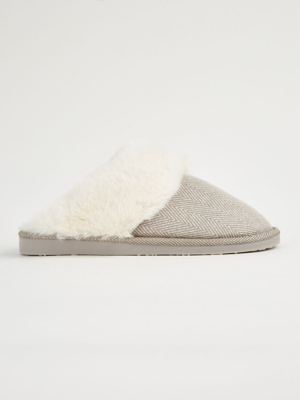 Grey Herringbone Mule Slippers Women at ASDA