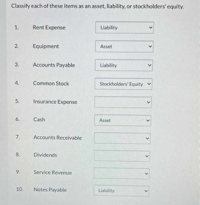 Solved Classify each of these items as an asset, liability,