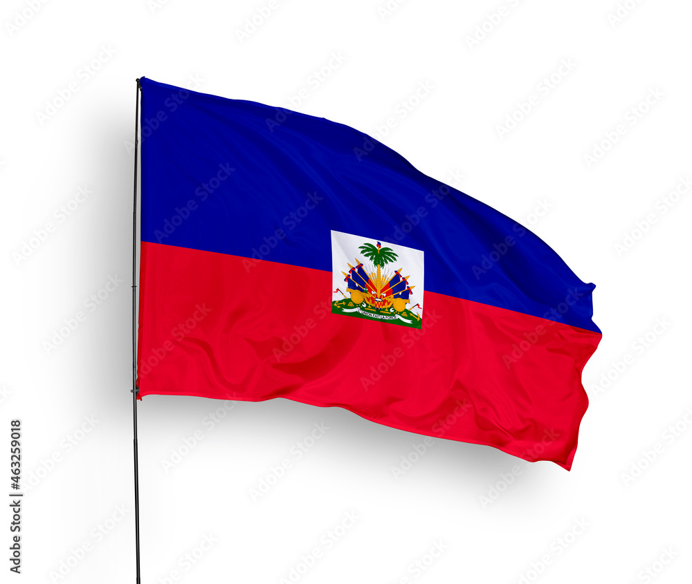 Haiti flag isolated on white background. close up waving flag of Haiti Symbols Of Haiti The national flag of haiti consists of two equal horizontal bands of blue and red with the coat of arms at the center. Each element of the flag tells a story, a chapter in the ongoing struggle for dignity and autonomy. To emphasize the significance of nature, haiti has selected a few forces of nature as national symbols. The emblem. Symbols Of Haiti.