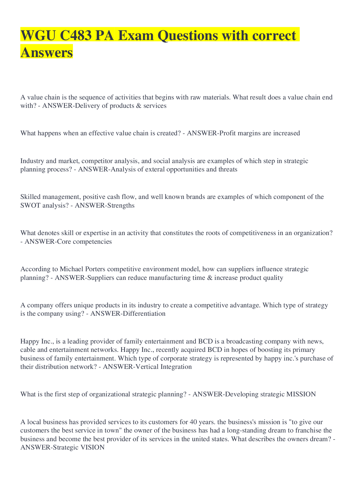 WGU C483 PA Exam Questions with correct Answers Browsegrades