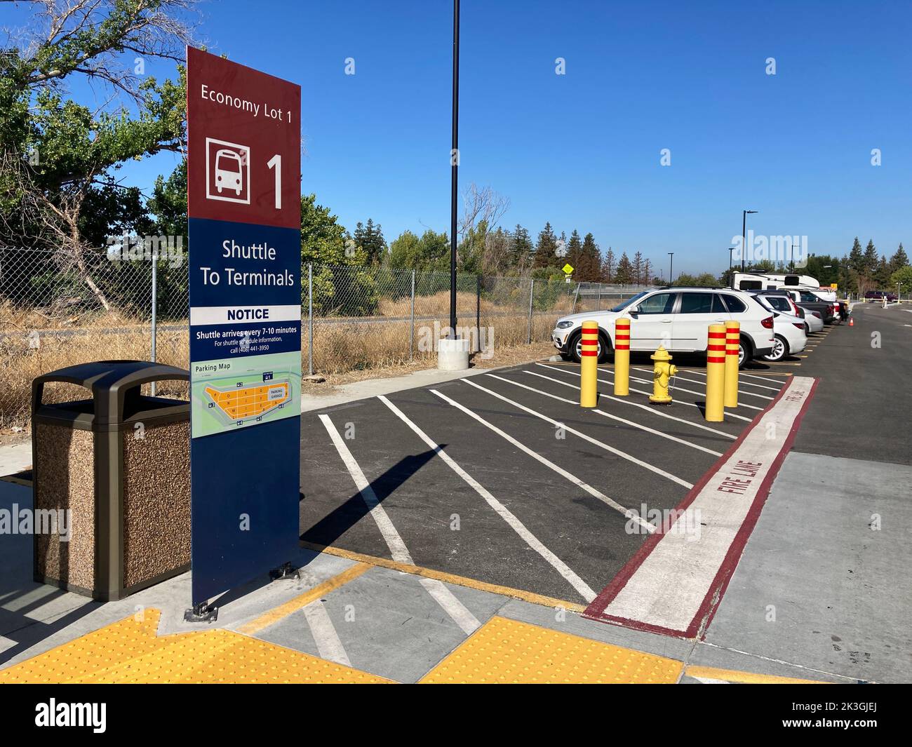 Economy Lot 1, shuttle to terminal sign at Norman Y. San Jose