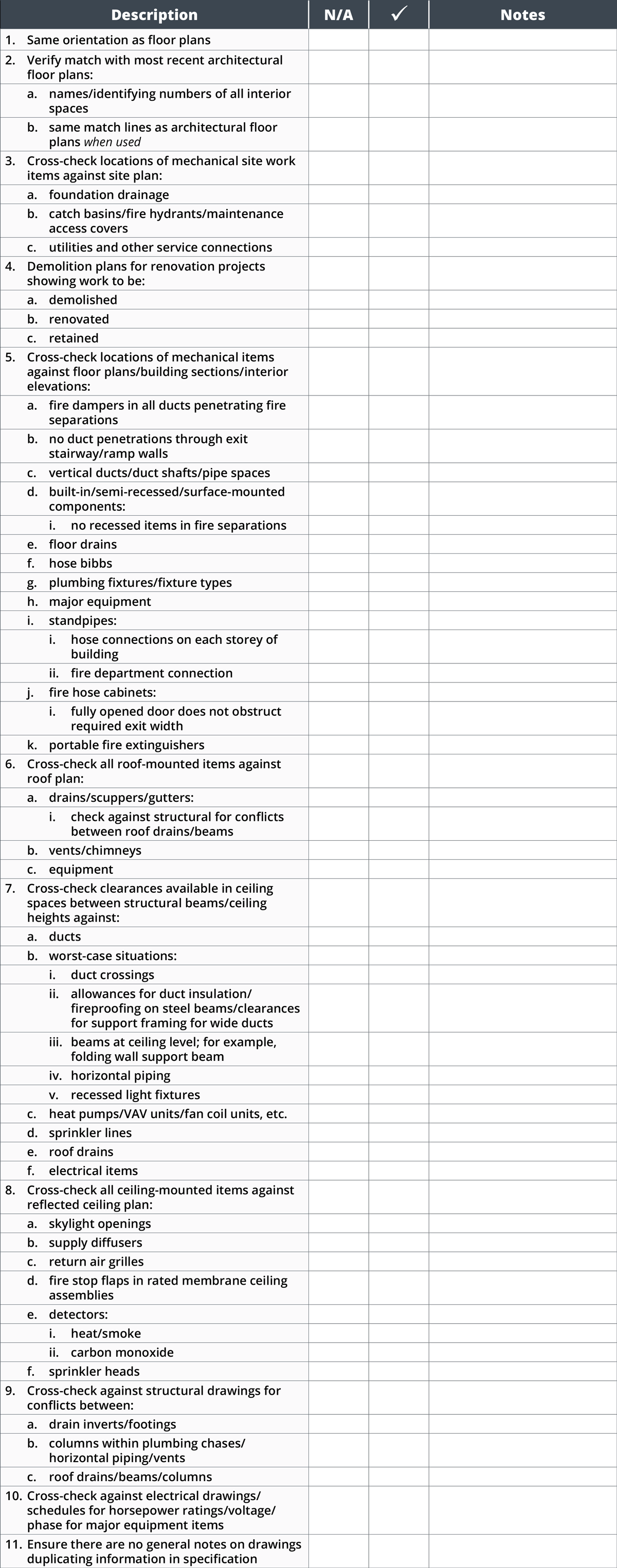 Appendix H Checklist Internal Review of Drawings Mechanical RAIC Construction Drawing Review Checklist Building codes and miscellaneous items information. here’s what a typical shop drawing review process looks like: 4 key challenges faced during the shop drawing review process and their impact on. included on this page, you'll find a preliminary design review checklist template, a critical design review. Drawing and design plan review is used when a project requires design. Construction Drawing Review Checklist.