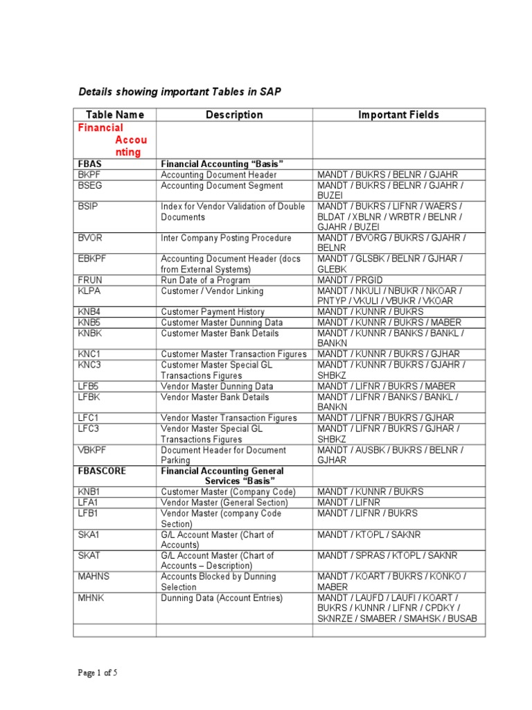 SAP tableslist Sap Tables And Fields Description Here is a list of tables organised by sap functional or module area (i.e. Crm, mm etc) to help you find the information you are looking for. 52 rows in this section you can browse the list of sap tables and their fields by software components & modules wise.from the table. Tables in sap tables description field names in sap. Sap Tables And Fields Description.