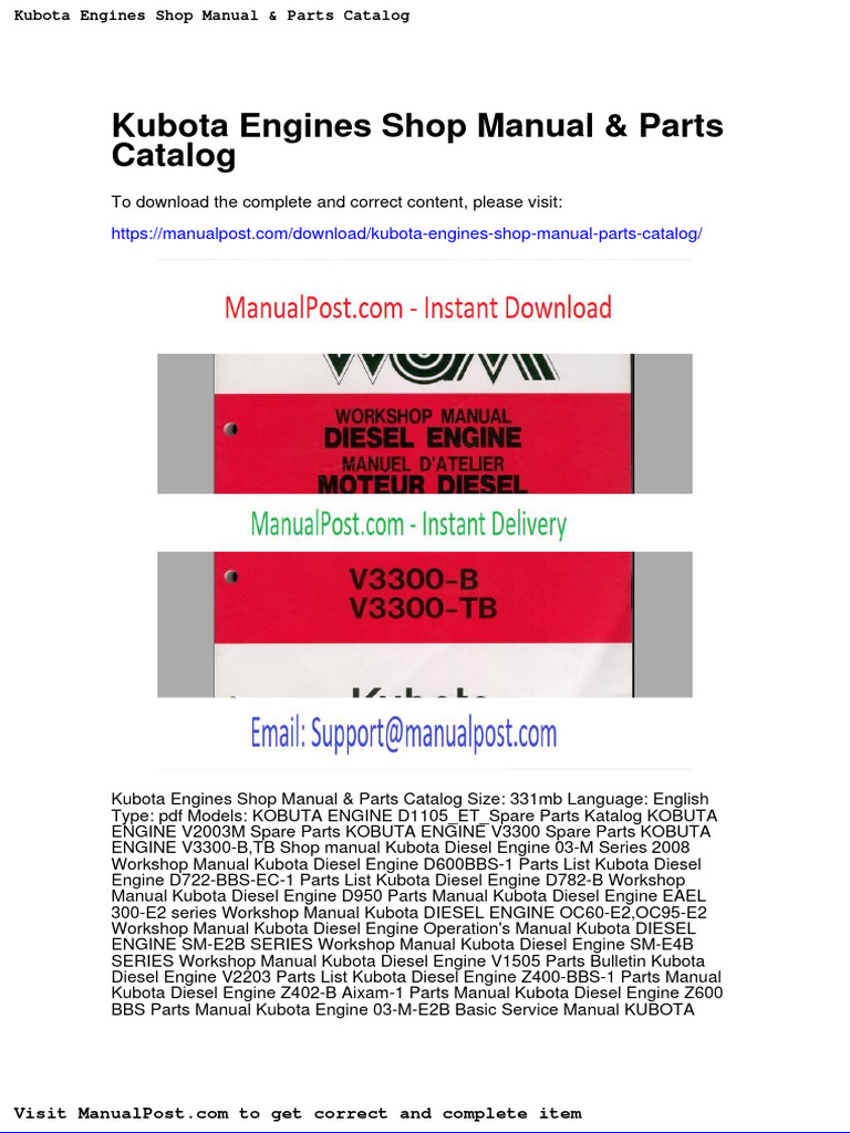 Kubota Engines Shop Manual Parts Catalog PDF Internal Combustion