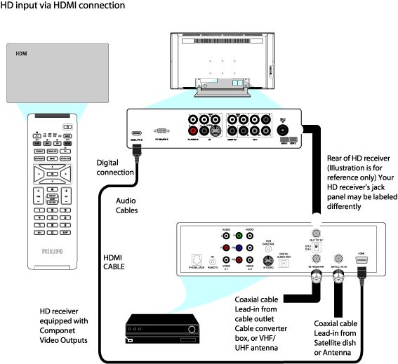 How to connect an HD receiver equipped with HDMI output to my Philips