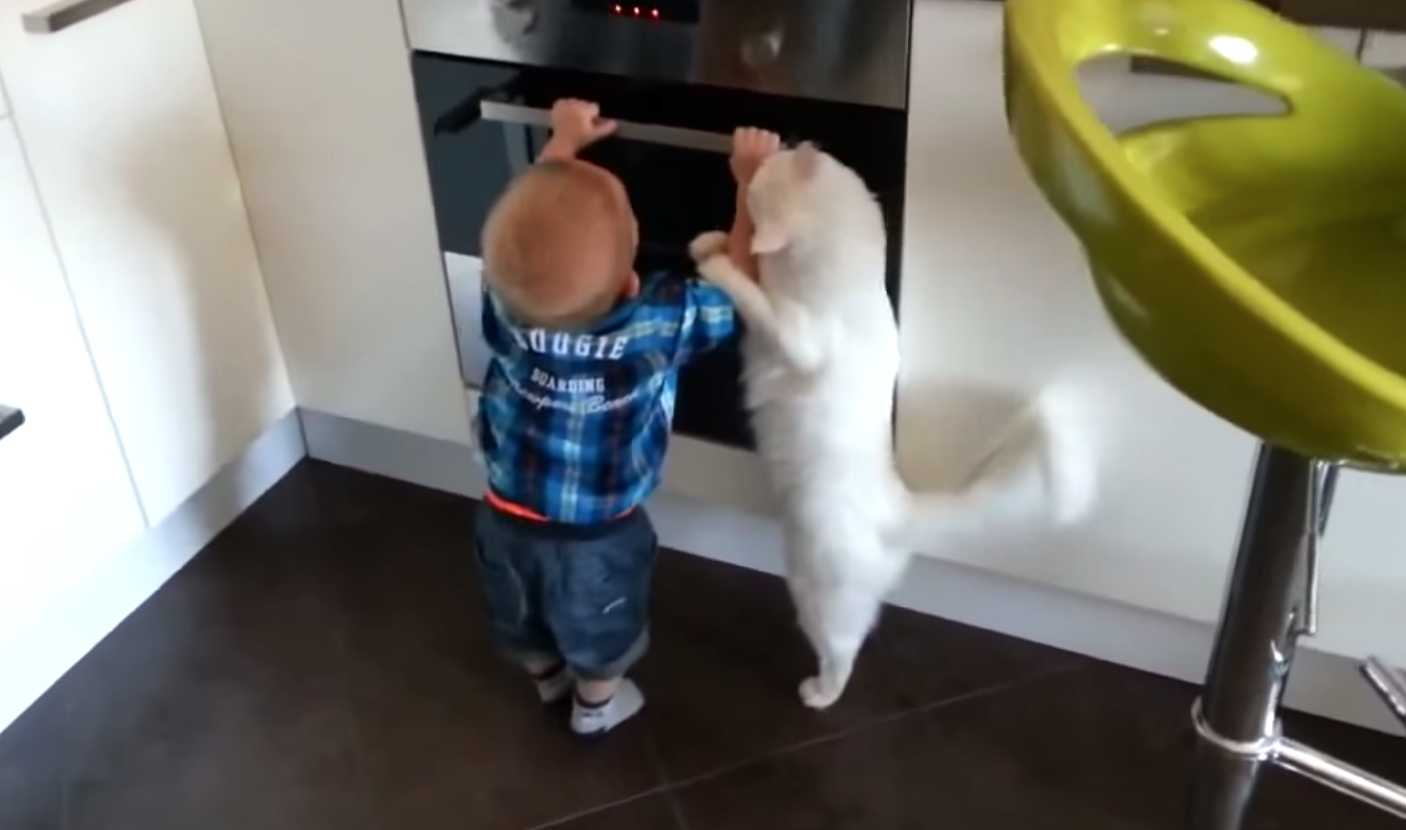 Hero Cat Saves Toddler From Stove Cat Saves Toddler From Climbing In it, the little child is trying to. The video, which first circulated on reddit, shows the smart feline gently pawing the toddler as he tries to latch onto the railing. Perched nearby is his cat, looking out at the view. Whenever the tot gets too close to the stairs, the cat wastes no time in stopping him. A house. Cat Saves Toddler From Climbing.