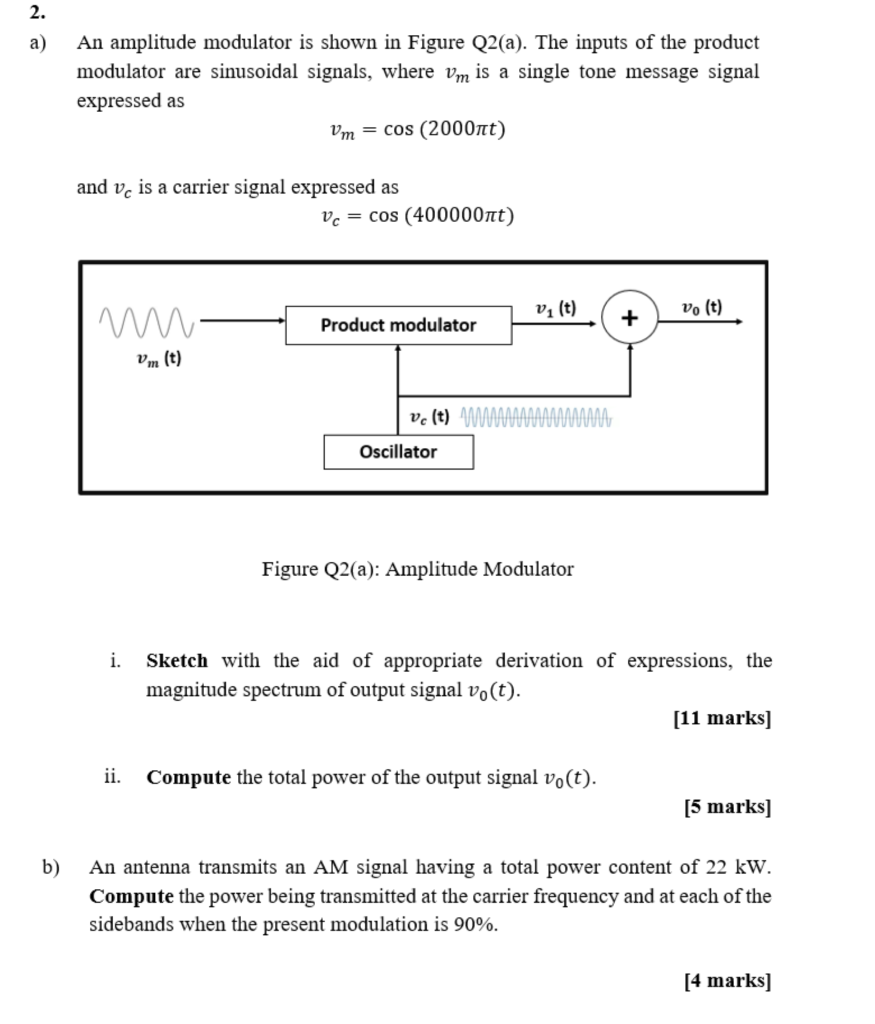 Solved a) An amplitude modulator is shown in Figure Q2(a).