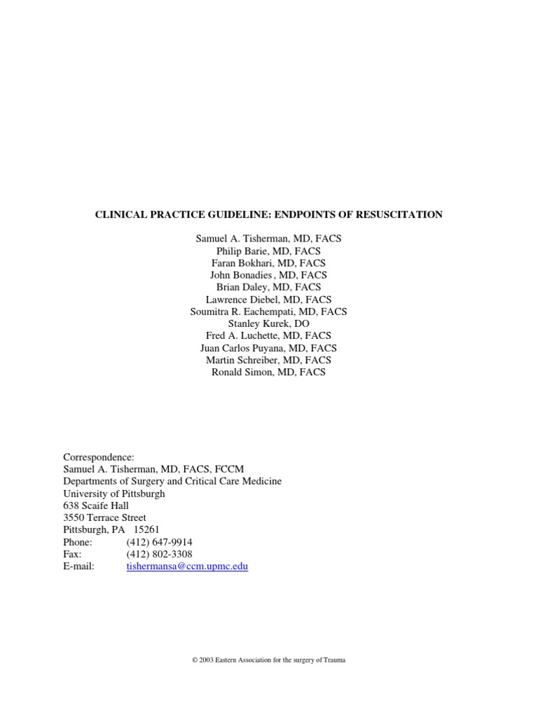 (PDF) Clinical Practice Guideline Endpoints of Resuscitation Endpoints Of Resuscitation (1) sbp >90 mm hg, (2) hr < 120. Various hemodynamic, metabolic, and regional endpoints have been described to evaluate the degree of shock and guide resuscitation efforts. This article, on hemodynamic monitoring, fluid responsiveness, volume assessment, and endpoints of resuscitation, is part of a. Given the above equation and the need to reverse anaerobic metabolism, the two common areas. Endpoints Of Resuscitation.