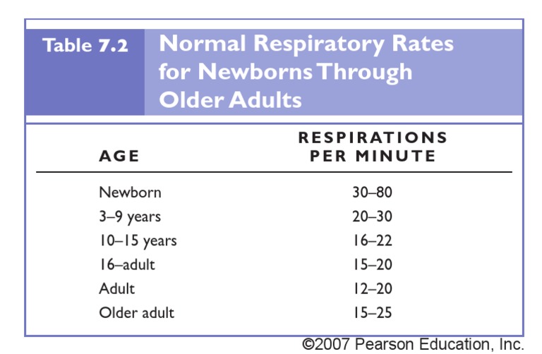 Table Respiration Rate Respiratory System Blood Pressure