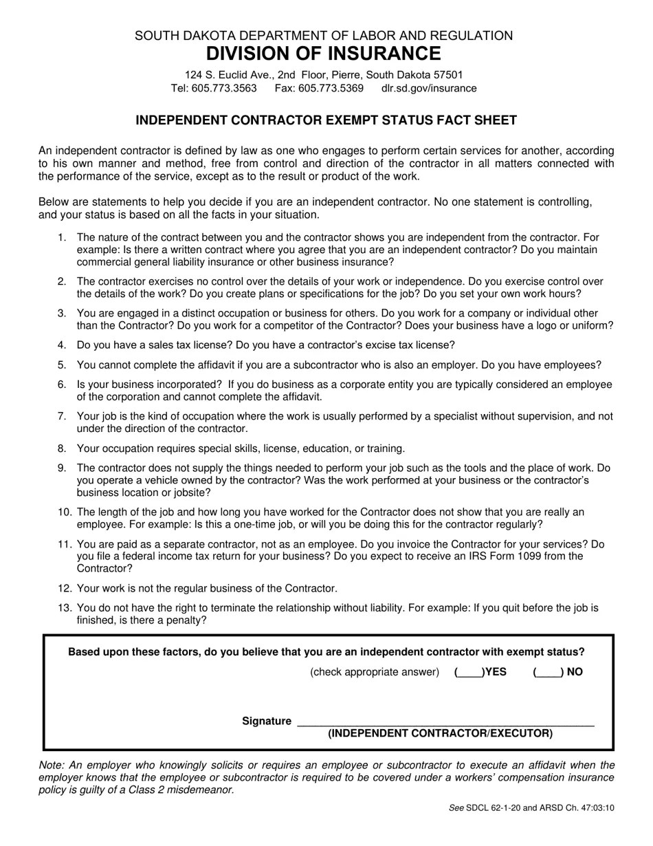 South Dakota Affidavit of Exempt Status Fill Out, Sign Online and