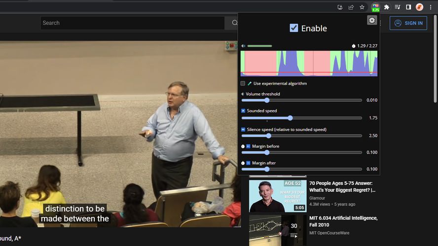 Jump Cutter Watch lectures 1.5x faster by fastforwarding long pauses