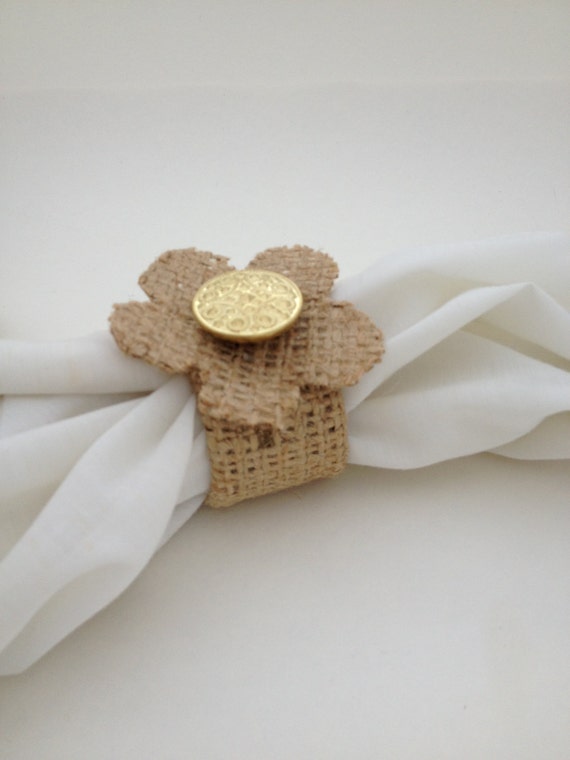 Items similar to Burlap Flower Wedding Napkin Rings with Vintage Style Button, Set of 8 Burlap