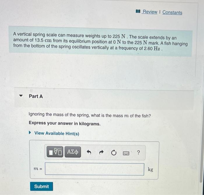 Solved A vertical spring scale can measure weights up to 225