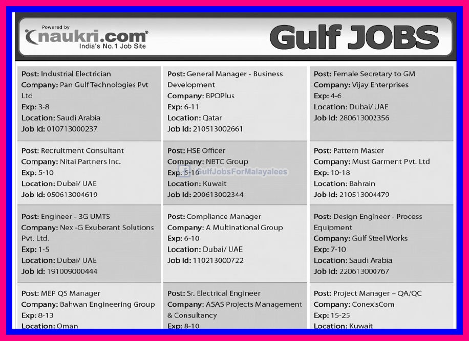Naukri Gulf Jobs New Vacancies Gulf Jobs for Malayalees