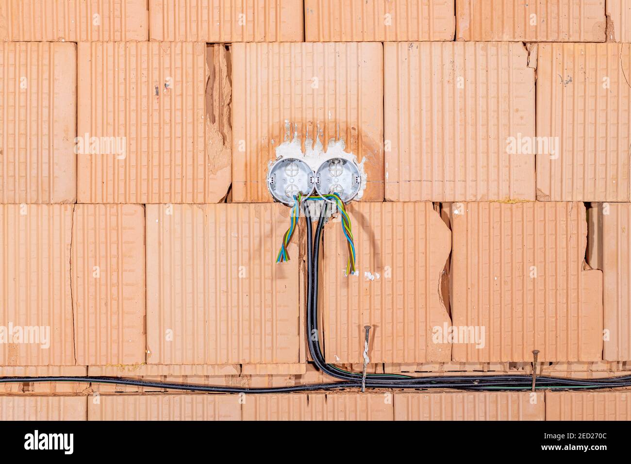 Socket back boxes with wires in a wall. Cabling background. Colorful Do Socket Back Boxes Have To Be Earthed Whether an earthing tail is required depends upon whether one or both of the lugs on the back box are adjustable (to permit the. Back boxes are defined as an exposed conductive part (not sure why!) and must be earthed, the fixed lugs of a back box are an. Yes, the metal faceplate needs to be earthed. You earth the. Do Socket Back Boxes Have To Be Earthed.