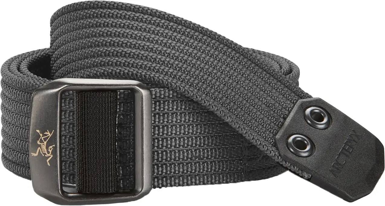 Arc'teryx Conveyor Belt 38mm Black END. Arc'teryx Unisex Conveyor Belt Arc'teryx keeps your pants up with style and performance with the conveyor belt. Heavy duty, textured webbing belt with contrasting colour stitch detail and a metal buckle with the arc’teryx logo. Anchor your favourite pants in place with this rugged versatile belt. Arc'teryx Unisex Conveyor Belt.