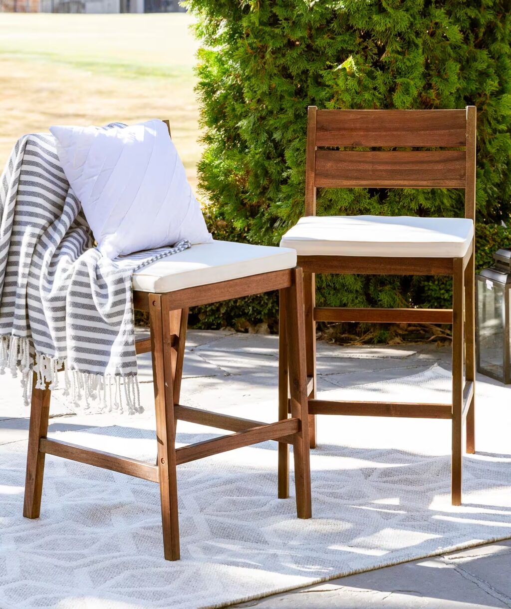 Danielle Outdoor Acacia Wood Bar Stools with Cushions, Set of 2, Gray Mahnor Outdoor Wood Bar Stool Looking for pretty outdoor bar stools for your patio? These patio bar stools will be an ideal patio set for you to enjoy your relaxing time with your family. Capturing the feeling of the french countryside, lark manor brings home enduring cottage charisma. I’ve rounded up the 23 best patio bar stools to buy! Inspired by the enchanting villages of.. Mahnor Outdoor Wood Bar Stool.