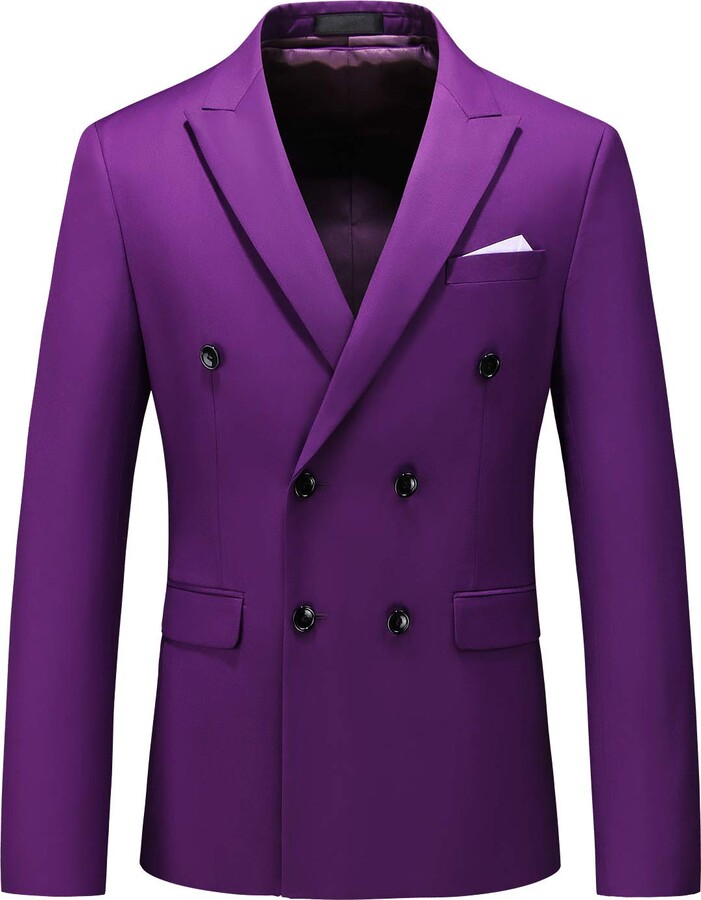 MOGU Mens Double Breasted Blazer Slim Fit Plain Color Suit Jacket US