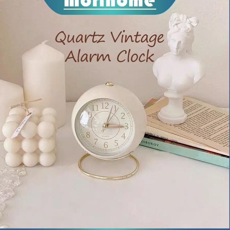 Quartz Vintage Alarm clock Aesthetic desktop bedside mute round paint