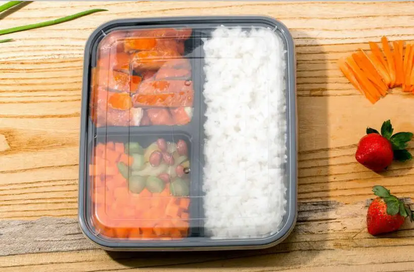 3 Compartment Reusable Food Storage Containers with Lids, Microwave and